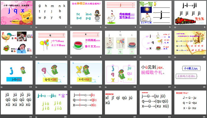 2.j q x 与 ü 相拼时ü上两点要省略.