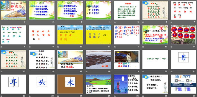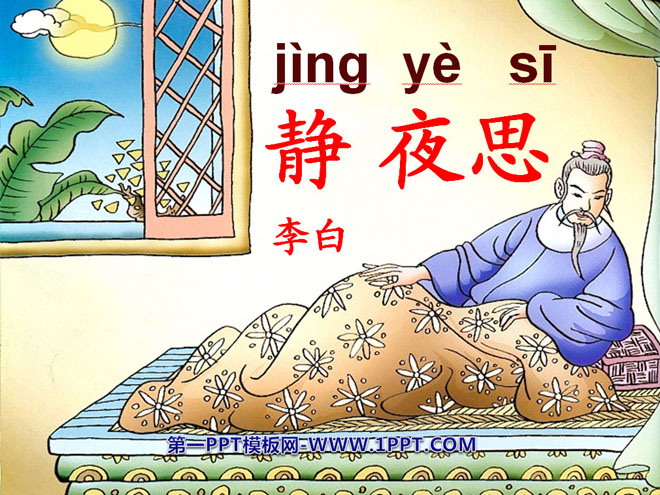 关键词:静夜思教学课件,鲁教版一年级上册语文PPT课件下载,一年级语文幻灯片课件下载,静夜思PPT课件下载,.PPT格式;
