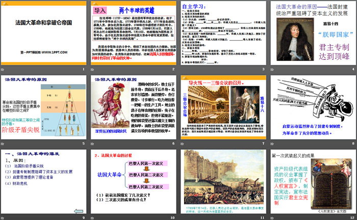 关键词:人教版八年级下册历史与社会PPT课件免费下载,法国大革命和拿破仑帝国PPT下载,世界工业文明的曙光与近代社会的开端PPT下载,.PPT格式;