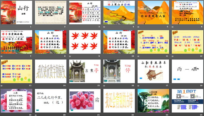 关键词:山行教学课件,鲁教版二年级上册语文PPT课件下载,二年级语文幻灯片课件下载,山行PPT课件下载,.PPT格式;