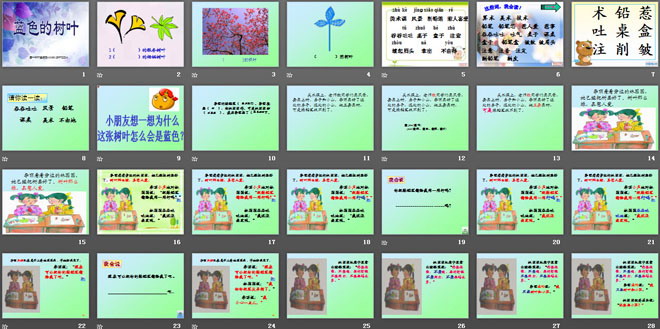 关键词:蓝色的树叶教学课件,鲁教版二年级上册语文PPT课件下载,二年级语文幻灯片课件下载,蓝色的树叶PPT课件下载,.PPT格式;