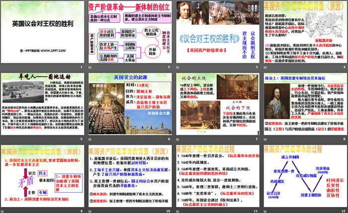 关键词:人教版八年级下册历史与社会PPT课件免费下载,英国议会对王权的胜利PPT下载,世界工业文明的曙光与近代社会的开端PPT下载,.PPT格式;