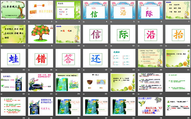 关键词:坐井观天教学课件,鲁教版二年级上册语文PPT课件下载,二年级语文幻灯片课件下载,坐井观天PPT课件下载,.PPT格式;