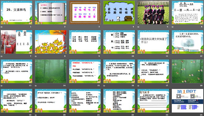 关键词:父亲和鸟教学课件,鲁教版二年级上册语文PPT课件下载,二年级语文幻灯片课件下载,父亲和鸟PPT课件下载,.PPT格式;