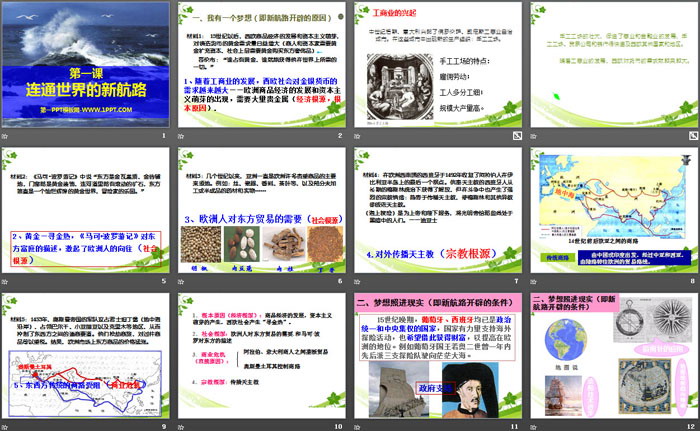 关键词:人教版八年级下册历史与社会PPT课件免费下载,连通世界的新航路PPT下载,世界工业文明的曙光与近代社会的开端PPT下载,.PPT格式;