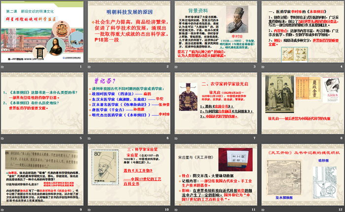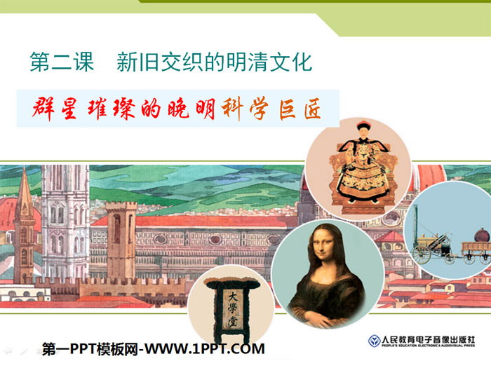 关键词:人教版八年级下册历史与社会PPT课件免费下载,群星璀璨的晚明科学巨匠PPT下载,新旧交织的明清文化PPT下载,.PPT格式;