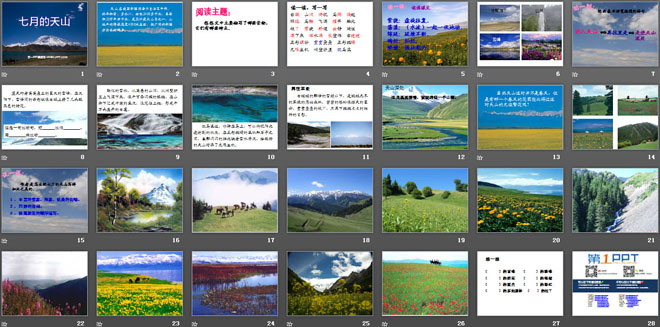 关键词:七月的天山教学课件,鲁教版四年级上册语文PPT课件下载,四年级语文幻灯片课件下载,七月的天山PPT课件下载,.PPT格式;