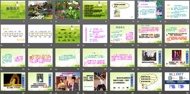关键词:触摸春天教学课件,鲁教版四年级上册语文PPT课件下载,四年级语文幻灯片课件下载,触摸春天PPT课件下载,.PPT格式;