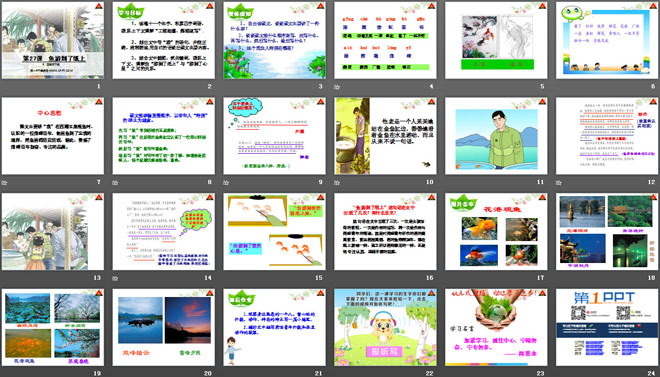 2、划出文中带“游”的语句,并能正确、流利朗读,用自己的话说出课文主要内容。