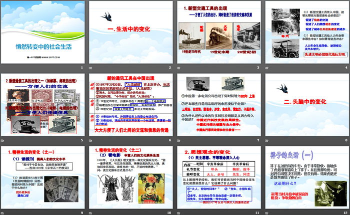 关键词:人教版九年级上册历史与社会PPT课件免费下载,悄然转变中的社会生活PPT下载,20世纪初的世界与中国PPT下载,.PPT格式;