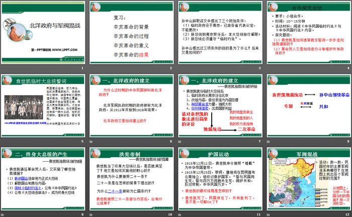 关键词:人教版九年级上册历史与社会PPT课件免费下载,北洋政府与军阀混战PPT下载,20世纪初的世界与中国PPT下载,.PPT格式;