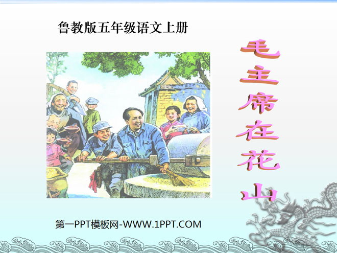 关键词:毛主席在花山教学课件,鲁教版五年级上册语文PPT课件下载,五年级语文幻灯片课件下载,毛主席在花山PPT课件下载,.PPT格式;