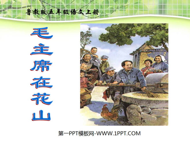 关键词:毛主席在花山教学课件,鲁教版五年级上册语文PPT课件下载,五年级语文幻灯片课件下载,毛主席在花山PPT课件下载,.PPT格式;