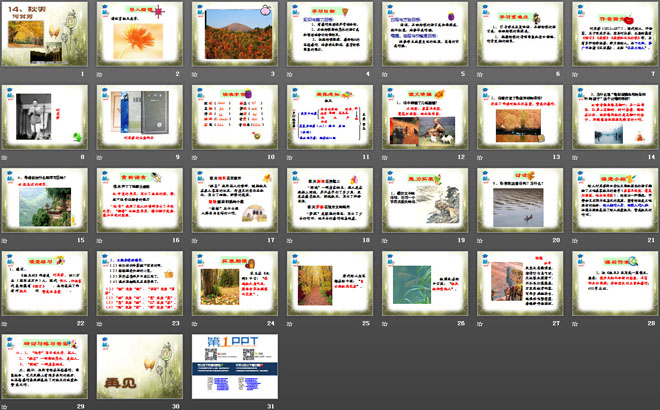 关键词:秋天教学课件,鲁教版六年级上册语文PPT课件下载,六年级语文幻灯片课件下载,秋天PPT课件下载,.PPT格式;