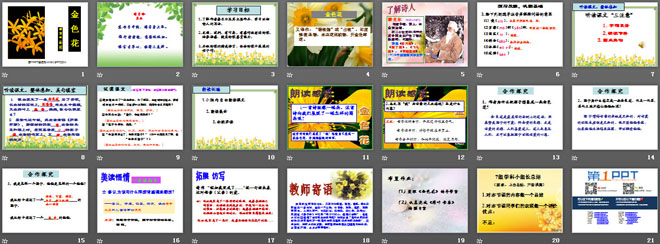 关键词:金色花教学课件,鲁教版六年级上册语文PPT课件下载,六年级语文幻灯片课件下载,金色花PPT课件下载,.PPT格式;