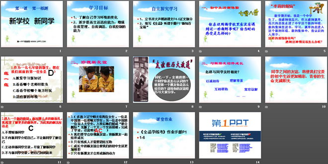 关键词:珍惜新起点教学课件,新学校新同学教学课件,人教版七年级上册思想品德PPT课件下载,七年级思想品德幻灯片课件下载,珍惜新起点PPT课件下载,新学校新同学PPT课件下载,.PPT格式;