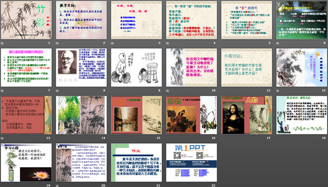 关键词:竹影教学课件,鲁教版七年级上册语文PPT课件下载,七年级语文幻灯片课件下载,竹影PPT课件下载,.PPT格式;