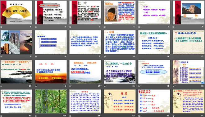 关键词:杜甫诗三首教学课件,望岳教学课件,石壕吏教学课件,春望教学课件,鲁教版七年级上册语文PPT课件下载,七年级语文幻灯片课件下载,杜甫诗三首PPT课件下载,望岳PPT课件下载,石壕吏PPT课件下载,春望PPT课件下载,.PPT格式