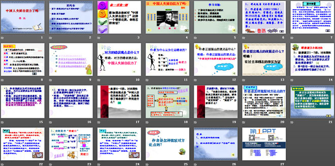 关键词:中国人失掉自信力了吗教学课件,鲁教版八年级上册语文PPT课件下载,八年级语文幻灯片课件下载,中国人失掉自信力了吗PPT课件下载,.PPT格式;