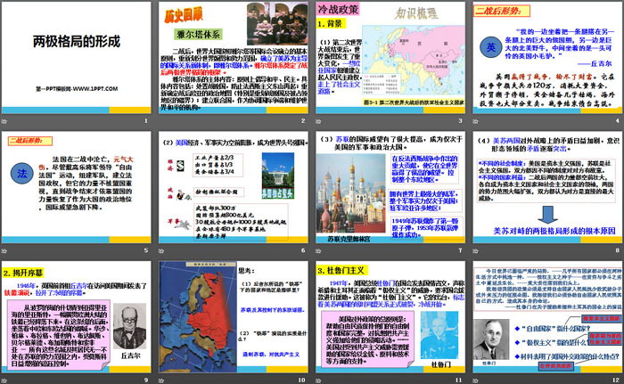 关键词:人教版九年级下册历史与社会PPT课件免费下载,两极格局的形成PPT下载,冷战时期的世界PPT下载,.PPT格式;
