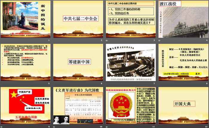 关键词:人教版九年级上册历史与社会PPT课件免费下载,新中国的诞生PPT下载,中国革命的胜利PPT下载,.PPT格式;