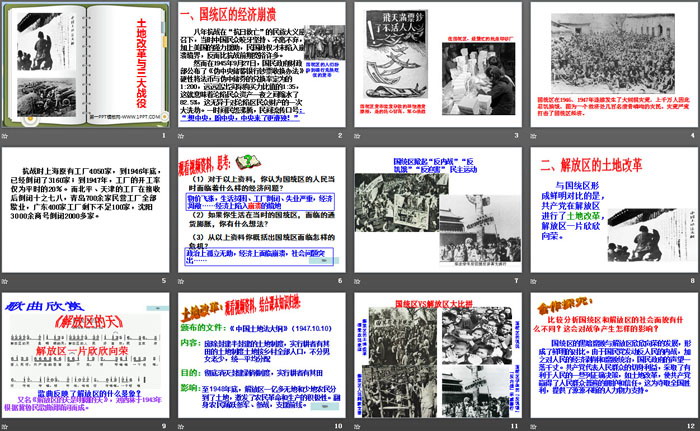 关键词:人教版九年级上册历史与社会PPT课件免费下载,土地革命与三大战役PPT下载,中国革命的胜利PPT下载,.PPT格式;