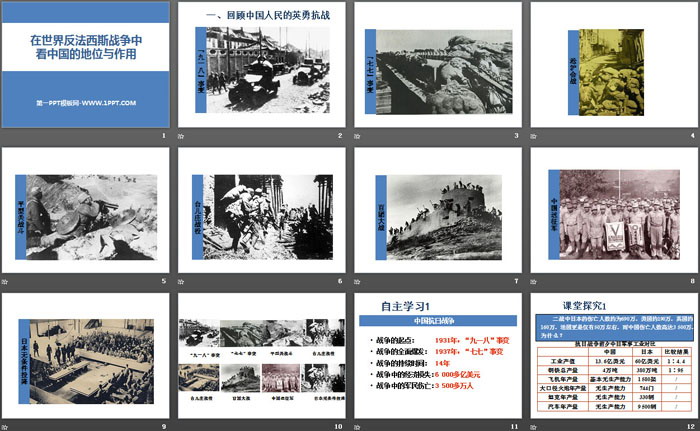 关键词:人教版九年级上册历史与社会PPT课件免费下载,在世界反法西斯战争中看中国的地位和作用PPT下载,中国抗日战争与世界反法西斯战争PPT下载,.PPT格式;