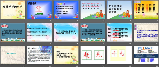 关键词:胖乎乎的小手教学课件,鲁教版一年级下册语文PPT课件下载,一年级语文幻灯片课件下载,胖乎乎的小手PPT课件下载,.PPT格式;