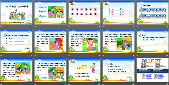 关键词:手捧空花盆的孩子教学课件,鲁教版一年级下册语文PPT课件下载,一年级语文幻灯片课件下载,手捧空花盆的孩子PPT课件下载,.PPT格式;