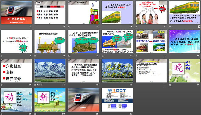 关键词:火车的故事教学课件,鲁教版一年级下册语文PPT课件下载,一年级语文幻灯片课件下载,火车的故事PPT课件下载,.PPT格式;