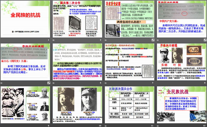 关键词:人教版九年级上册历史与社会PPT课件免费下载,全民族的抗战PPT下载,中国抗日战争与世界反法西斯战争PPT下载,.PPT格式;
