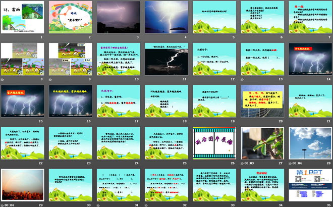 关键词:雷雨教学课件,鲁教版二年级下册语文PPT课件下载,二年级语文幻灯片课件下载,雷雨PPT课件下载,.PPT格式;