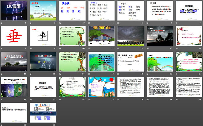 关键词:雷雨教学课件,鲁教版二年级下册语文PPT课件下载,二年级语文幻灯片课件下载,雷雨PPT课件下载,.PPT格式;