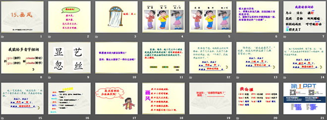 关键词:画风教学课件,鲁教版二年级下册语文PPT课件下载,二年级语文幻灯片课件下载,画风PPT课件下载,.PPT格式;