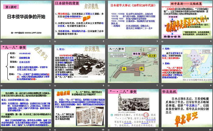 关键词:人教版九年级上册历史与社会PPT课件免费下载,日本侵华战争的开始PPT下载,中国抗日战争与世界反法西斯战争PPT下载,.PPT格式;