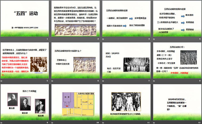 关键词:人教版九年级上册历史与社会PPT课件免费下载,五四运动PPT下载,开辟新的发展道路PPT下载,.PPT格式;