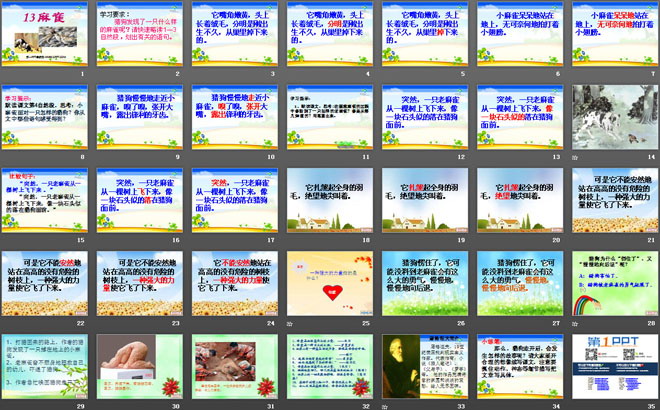 关键词:麻雀教学课件,鲁教版三年级下册语文PPT课件下载,三年级语文幻灯片课件下载,麻雀PPT课件下载,.PPT格式;