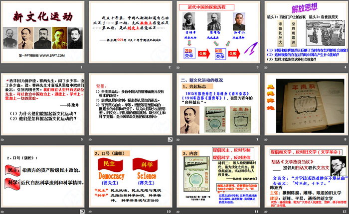 关键词:人教版九年级上册历史与社会PPT课件免费下载,新文化运动PPT下载,开辟新的发展道路PPT下载,.PPT格式;