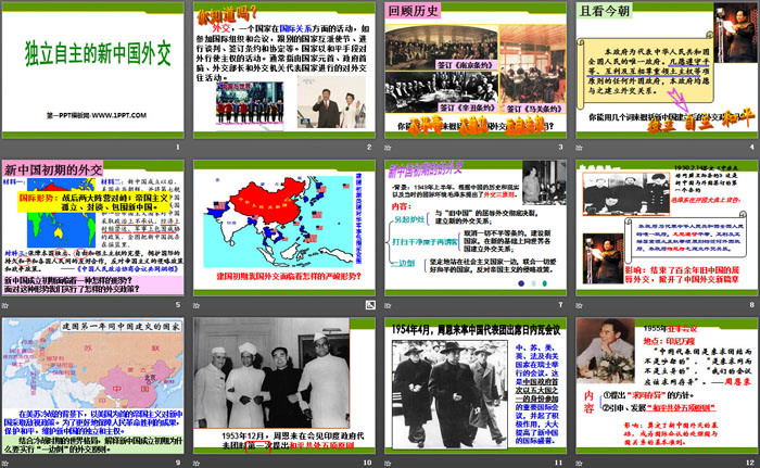 关键词:人教版九年级下册历史与社会PPT课件免费下载,独立自主的新中国外交PPT下载,新中国的建设与改革PPT下载,.PPT格式;