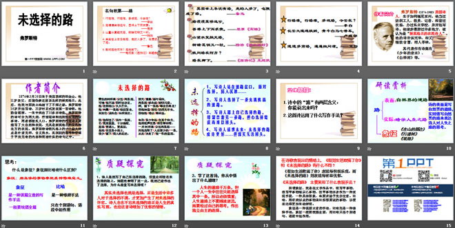关键词:未选择的路教学课件,鲁教版六年级下册语文PPT课件下载,六年级语文幻灯片课件下载,未选择的路PPT课件下载,.PPT格式;