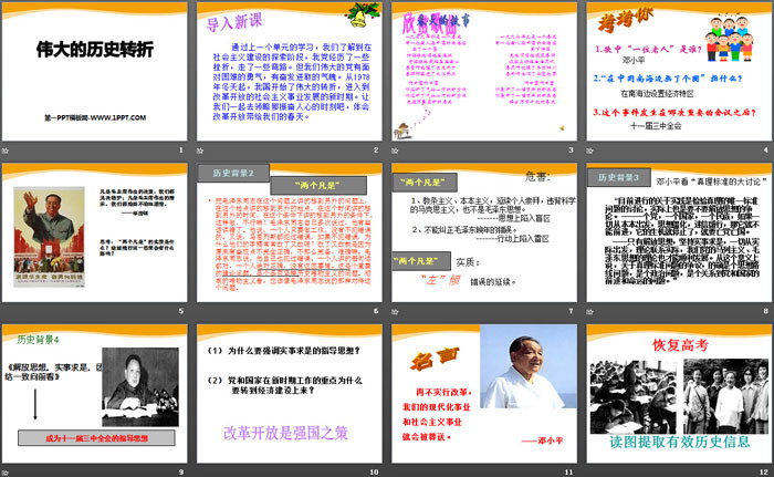 关键词:人教版九年级下册历史与社会PPT课件免费下载,伟大的历史转折PPT下载,新中国的建设与改革PPT下载,.PPT格式;