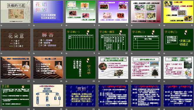 关键词:失根的兰花教学课件,鲁教版六年级下册语文PPT课件下载,六年级语文幻灯片课件下载,失根的兰花PPT课件下载,.PPT格式;