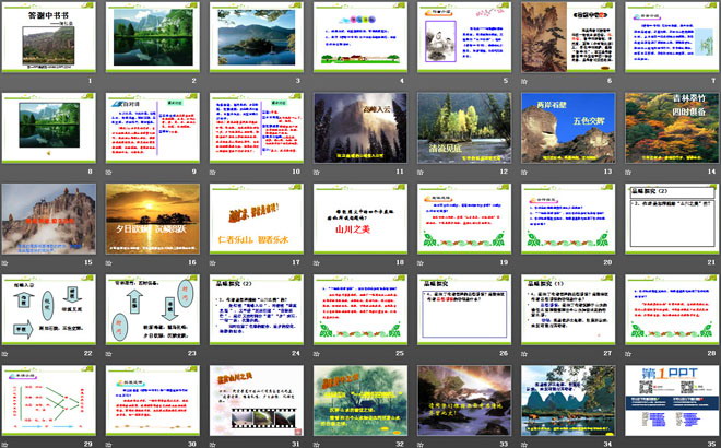 2.学习《答谢中书书》文中自然景物的描写,体会作者的高雅情怀。