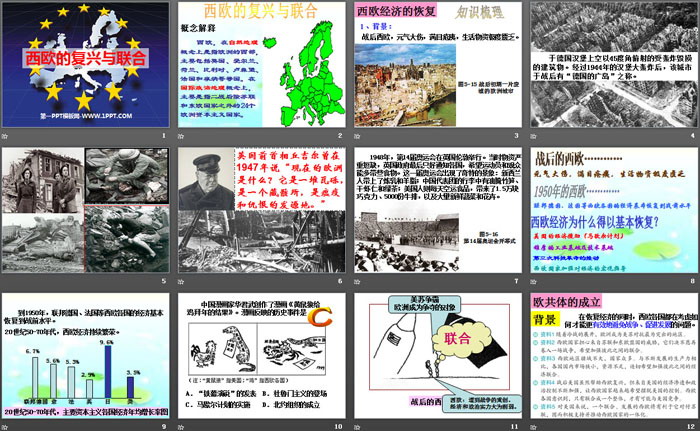 关键词:人教版九年级下册历史与社会PPT课件免费下载,西欧的复兴与联合PPT下载,冷战时期的世界PPT下载,.PPT格式;