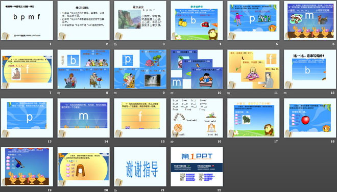 关键词:bpmf教学课件,湘教版一年级上册语文PPT课件下载,一年级语文幻灯片课件下载,bpmfPPT课件下载,.PPT格式;