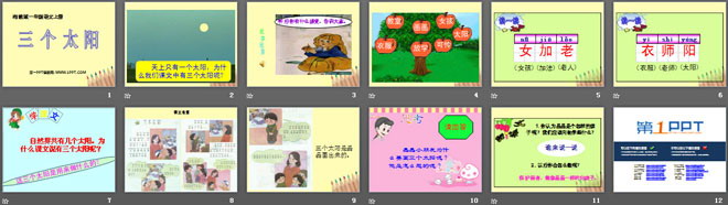 关键词:三个太阳教学课件,湘教版一年级上册语文PPT课件下载,一年级语文幻灯片课件下载,三个太阳PPT课件下载,.PPT格式;