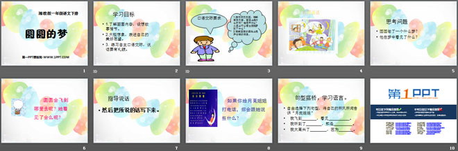 关键词:圆圆的梦教学课件,湘教版一年级下册语文PPT课件下载,一年级语文幻灯片课件下载,圆圆的梦PPT课件下载,.PPT格式;