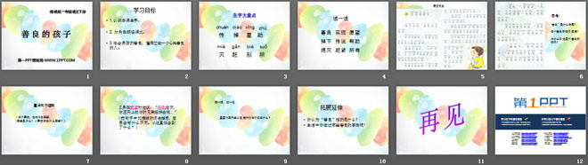 关键词:善良的孩子教学课件,湘教版一年级下册语文PPT课件下载,一年级语文幻灯片课件下载,善良的孩子PPT课件下载,.PPT格式;