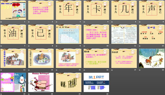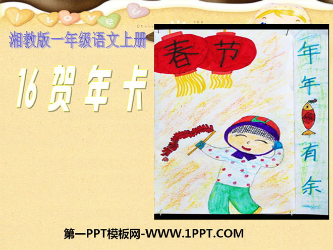 关键词:贺年卡教学课件,湘教版一年级上册语文PPT课件下载,一年级语文幻灯片课件下载,贺年卡PPT课件下载,.PPT格式;