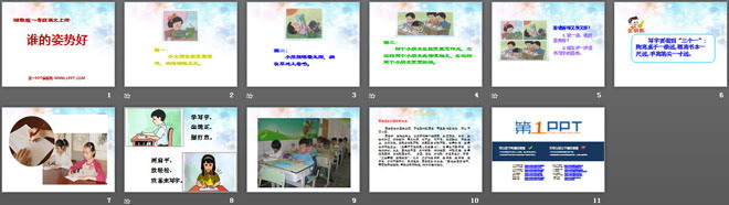 关键词:谁的姿势好教学课件,湘教版一年级上册语文PPT课件下载,一年级语文幻灯片课件下载,谁的姿势好PPT课件下载,.PPT格式;